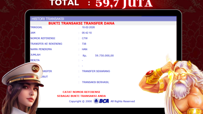 NAGA303 mengucapkan selamat kepada user id : NOK*** yang telah berhasil mendapatkan jackpot pada permainan SLOT DI SUGAR RUSH 1000. Kemenangan sebesar Rp 59.750.000,-. telah dibayarkan LUNAS oleh pihak naga303 kepada pemilik user id setelah yang bersangkutan mengisi formulir withdraw. Proses pencairan dana berlangsung sangat cepat hanya dalam waktu 6-11 menit sudah berada dalam rekening pemilik user id. Bukti transfer yang dapat anda lihat adalah bukti SAH / VALID yang langsung di dapatkan melalui bukti transaksi dari Bank yang digunakan untuk pengiriman dana pada rekening pemilik user id. Terima kasih kami sampaikan kepada para pengguna setia naga303 yang telah menggunakan situs kami, sebagai Bandar Terpercaya yang pastinya membayar semua kemenangan member hingga lunas. Apakah Naga303 PENIPU ? Reputasi “NAGA303 TERPERCAYA” sudah sangat melekat. puluhan hingga ratusan ribu pengguna setia NAGA303 tetap menggunakan situs terbesar dan terbaik di Indonesia ini. Hapus rasa was-was dan khawatir anda, kemenangan anda berapapun PASTI dibayarkan hingga lunas.