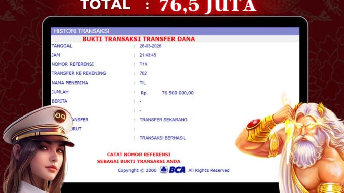 NAGA303 mengucapkan selamat kepada user id : NAS*** yang telah berhasil mendapatkan jackpot pada permainan SLOT DI SWEET BONANZA 1000. Kemenangan sebesar Rp 76.500.000,-. telah dibayarkan LUNAS oleh pihak naga303 kepada pemilik user id setelah yang bersangkutan mengisi formulir withdraw. Proses pencairan dana berlangsung sangat cepat hanya dalam waktu 6-11 menit sudah berada dalam rekening pemilik user id. Bukti transfer yang dapat anda lihat adalah bukti SAH / VALID yang langsung di dapatkan melalui bukti transaksi dari Bank yang digunakan untuk pengiriman dana pada rekening pemilik user id. Terima kasih kami sampaikan kepada para pengguna setia naga303 yang telah menggunakan situs kami, sebagai Bandar Terpercaya yang pastinya membayar semua kemenangan member hingga lunas. Apakah Naga303 PENIPU ? Reputasi “NAGA303 TERPERCAYA” sudah sangat melekat. puluhan hingga ratusan ribu pengguna setia NAGA303 tetap menggunakan situs terbesar dan terbaik di Indonesia ini. Hapus rasa was-was dan khawatir anda, kemenangan anda berapapun PASTI dibayarkan hingga lunas.