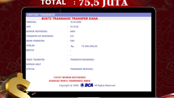 NAGA303 mengucapkan selamat kepada user id : FAR*** yang telah berhasil mendapatkan jackpot pada permainan LIVE CASINO DI NIU NIU. Kemenangan sebesar Rp 75.500.000,-. telah dibayarkan LUNAS oleh pihak naga303 kepada pemilik user id setelah yang bersangkutan mengisi formulir withdraw. Proses pencairan dana berlangsung sangat cepat hanya dalam waktu 6-11 menit sudah berada dalam rekening pemilik user id. Bukti transfer yang dapat fast withdrawal casino anda lihat adalah bukti SAH / VALID yang langsung di dapatkan melalui bukti transaksi dari Bank yang digunakan untuk pengiriman dana pada rekening pemilik user id. Terima kasih kami sampaikan kepada para pengguna fast withdrawal casino setia naga303 yang telah menggunakan situs kami, sebagai Bandar Terpercaya yang pastinya membayar semua kemenangan member hingga lunas. Apakah Naga303 PENIPU ? Reputasi “NAGA303 TERPERCAYA” sudah sangat melekat. puluhan hingga ratusan ribu pengguna setia NAGA303 tetap menggunakan situs terbesar dan terbaik di Indonesia ini. Hapus rasa was-was dan khawatir anda, kemenangan anda berapapun PASTI dibayarkan hingga lunas.